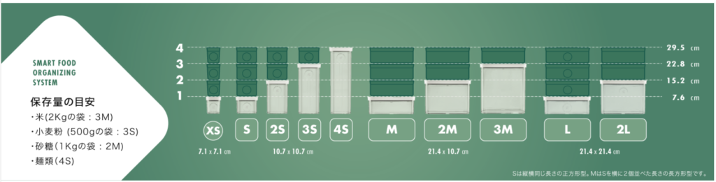 ZWILLINGの真空保存容器は、下記の画像がサイズが確認できます。