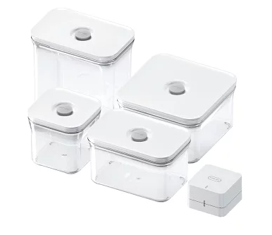 ZWILLINGの電動ポンプは、サイズはやや大きめですが、その分充電回数が少なくすむことが特徴です。電動ポンプの機能が落ちないために3~6カ月に1回の充電が推奨されているので、充電の手間はほとんどないとも言えます。また電動ポンプなしでも容器は密閉可能です。